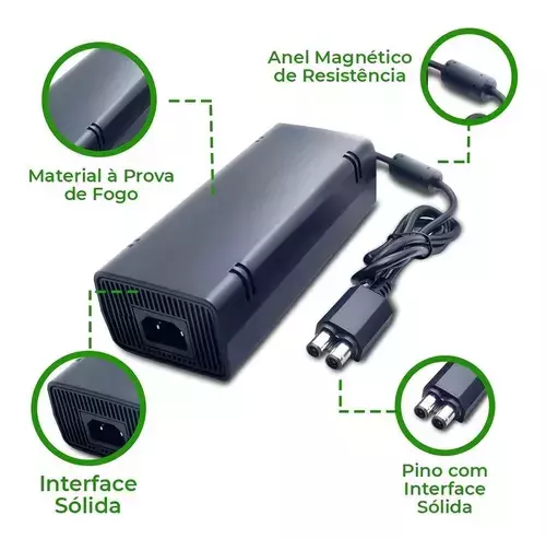 A fonte de alimentação do Xbox 360 Slim serve para fornecer a energia necessária para que o videogame funcione.